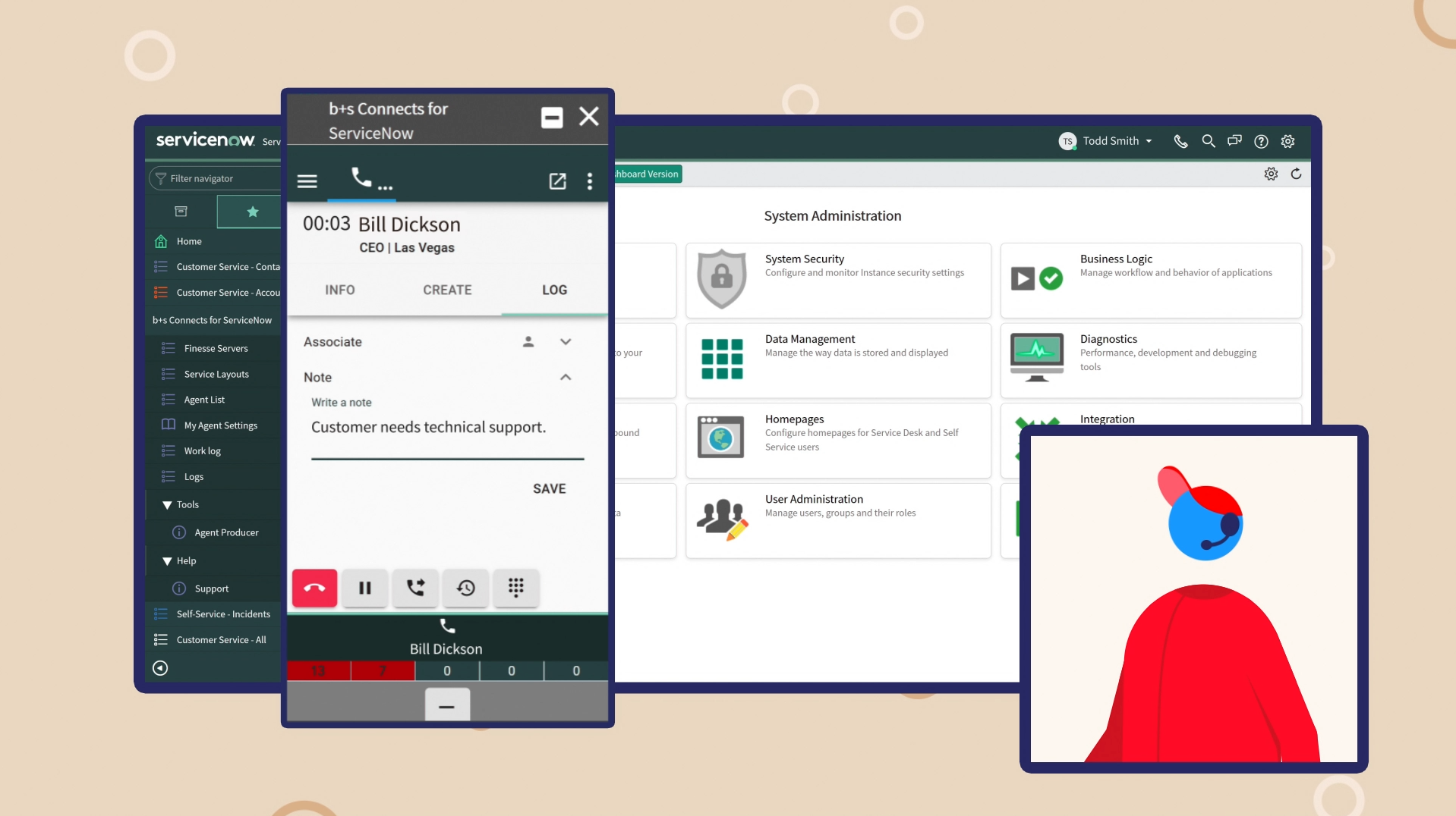 b+s Connects is the simplest way to provide a unified agent desktop inside ServiceNow