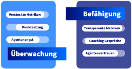 Transparenz darüber, wie Scoring funktioniert. Versteckte Metriken untergraben Vertrauen schneller als harte Rückmeldungen. Wenn Agenten verstehen, was der Algorithmus misst und warum, werden sie eher damit arbeiten – als Entwicklungswerkzeug – statt es als Bedrohung abzuwehren.
